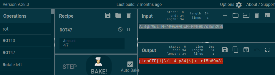 The decode_secret function provides a big clue with ROT47. I placed bezos_cc_secret into CyberChef and used the ROT47 recipe to decode the flag: